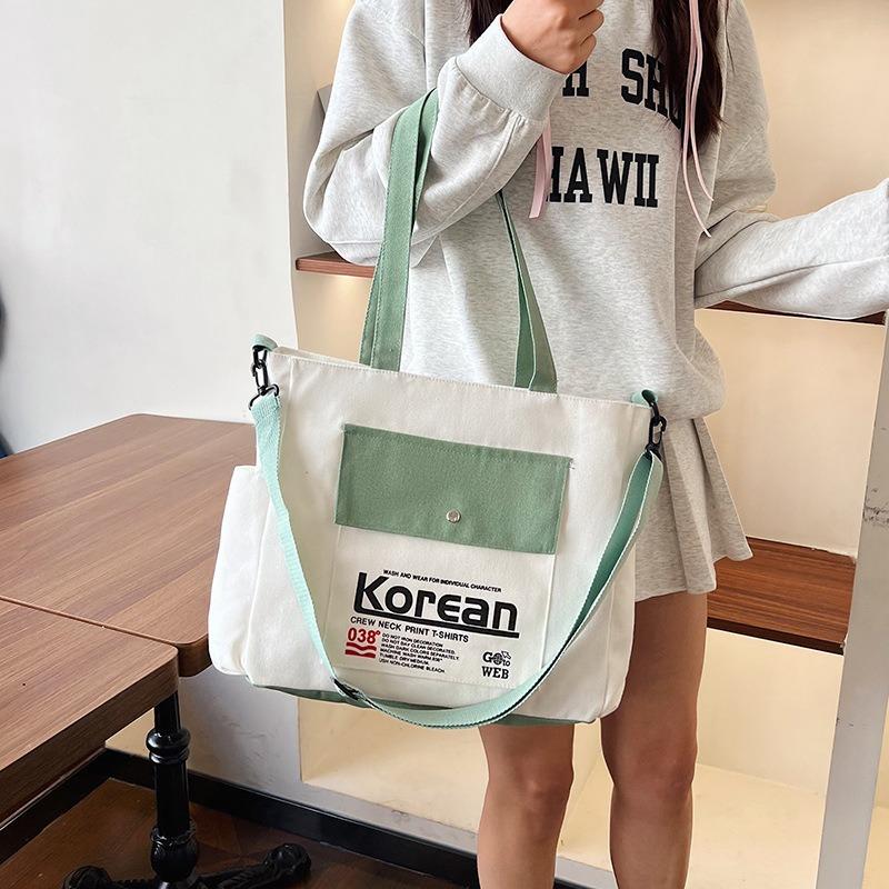 Simple style women's hand-held canvas bag New trendy versatile messenger shoulder bag Large capacity student commuter armpit bag
