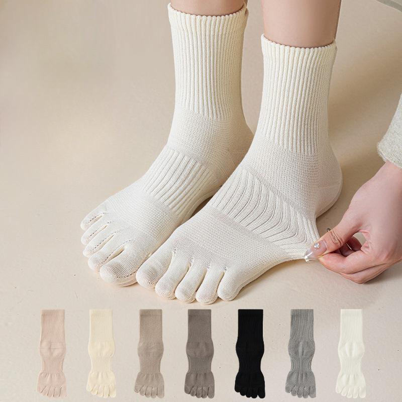Female Autumn and Winter 10A Anti Bacterial Anti Odor Sweat Absorption Breathable Waist Boneless Tube Five Finger Socks