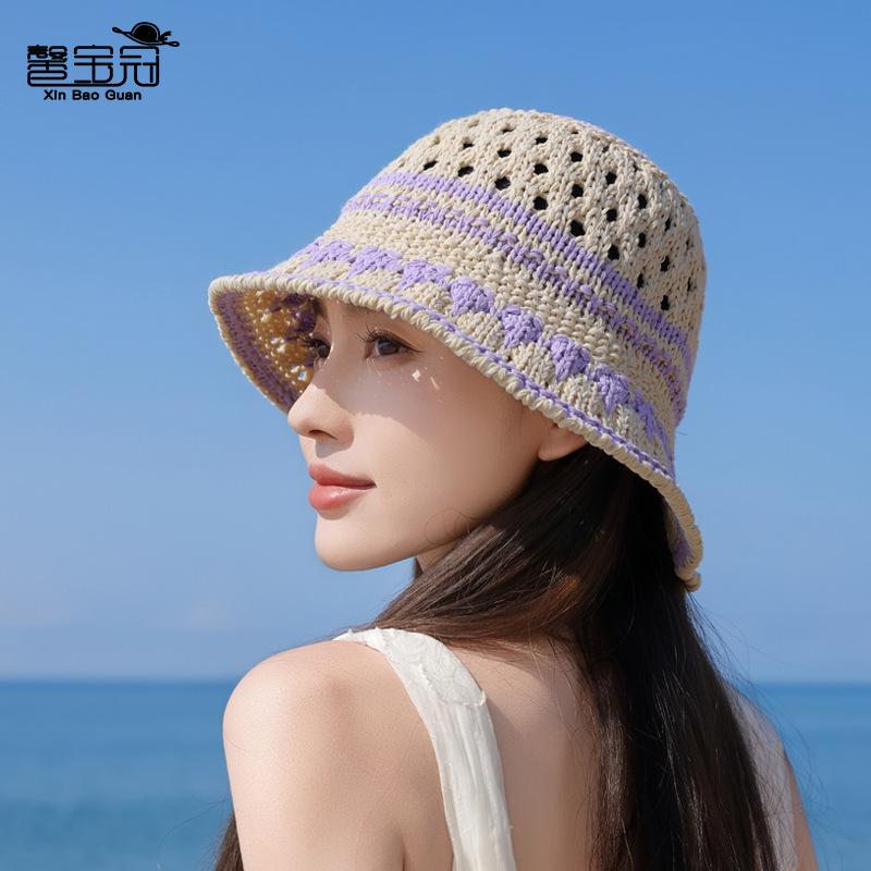 Fashion bucket hat casual versatile washbasin hat summer knitted hollow breathable sunscreen bucket hat