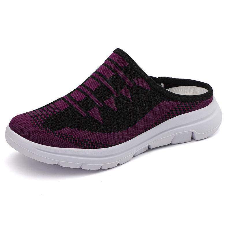 Women's 2024 Fashion Fly-knit Half-Slippers: Breathable, Slip-on Mesh Casual Shoes.