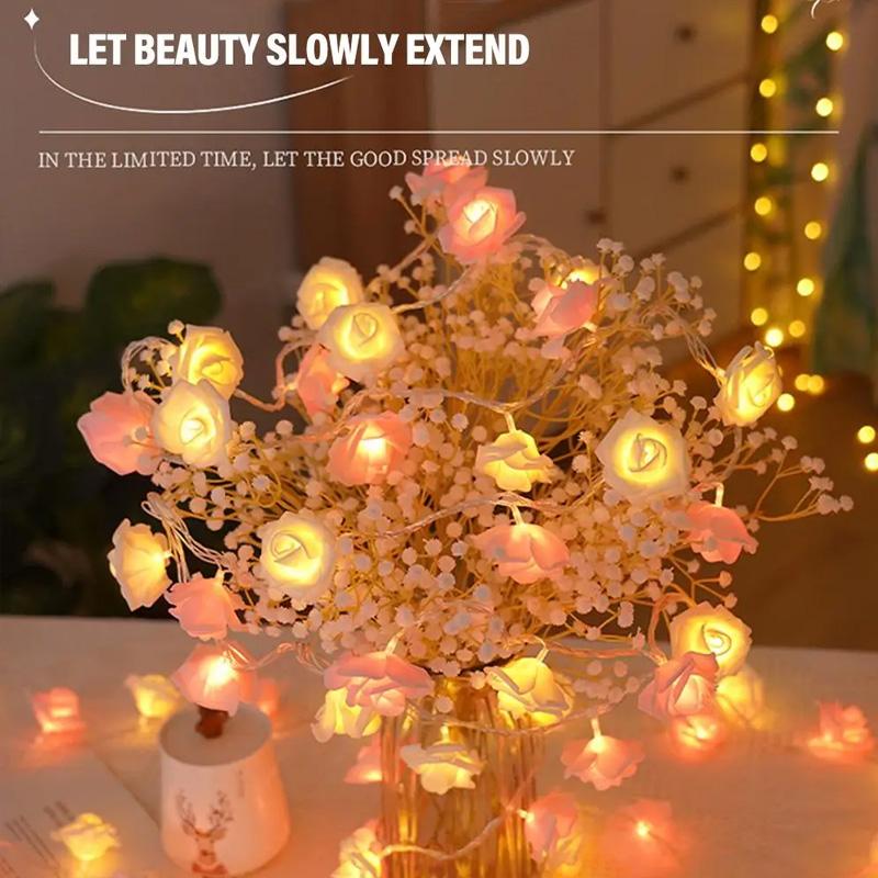 Ghirlandă luminoasă cu 20 de LED-uri, Lumini de zână pentru Ziua Îndrăgostiților, Ghirlandă cu baterii pentru nuntă, Floare romantică trandafir, 300CM