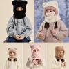 Children's hats, winter warm, windproof, ear protectors, sleeves, knitted wool hats, plush bears, scarves, face masks, integrated hats