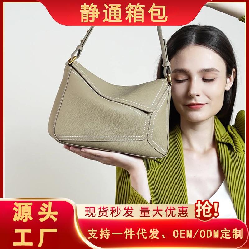 First layer cowhide shoulder messenger bag New versatile commuter pillow bag Premium geometric underarm tote bag Women's bag