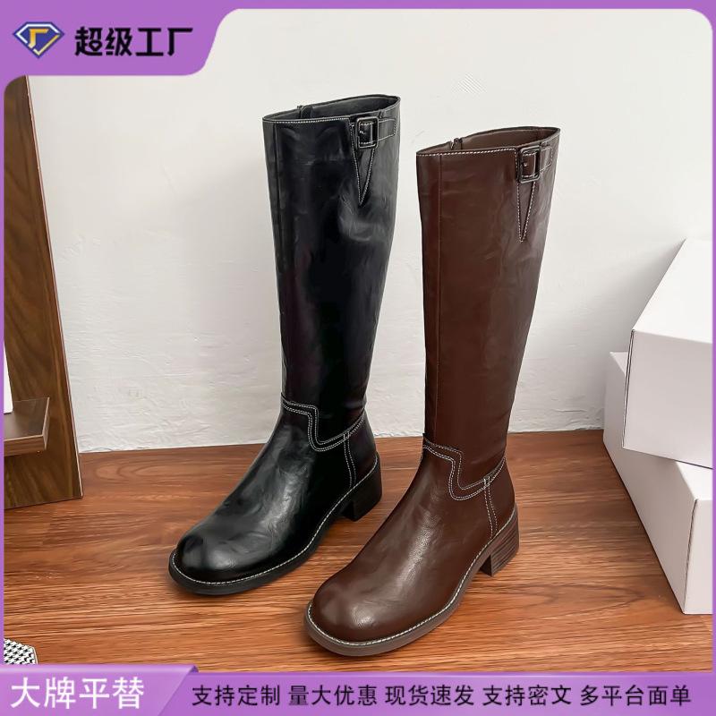 Piele de cal spălată~ Piele naturală cu talpă groasă dar cizme până la genunchi cizme maro de damă în stil retro britanic cizme înalte de cavaler