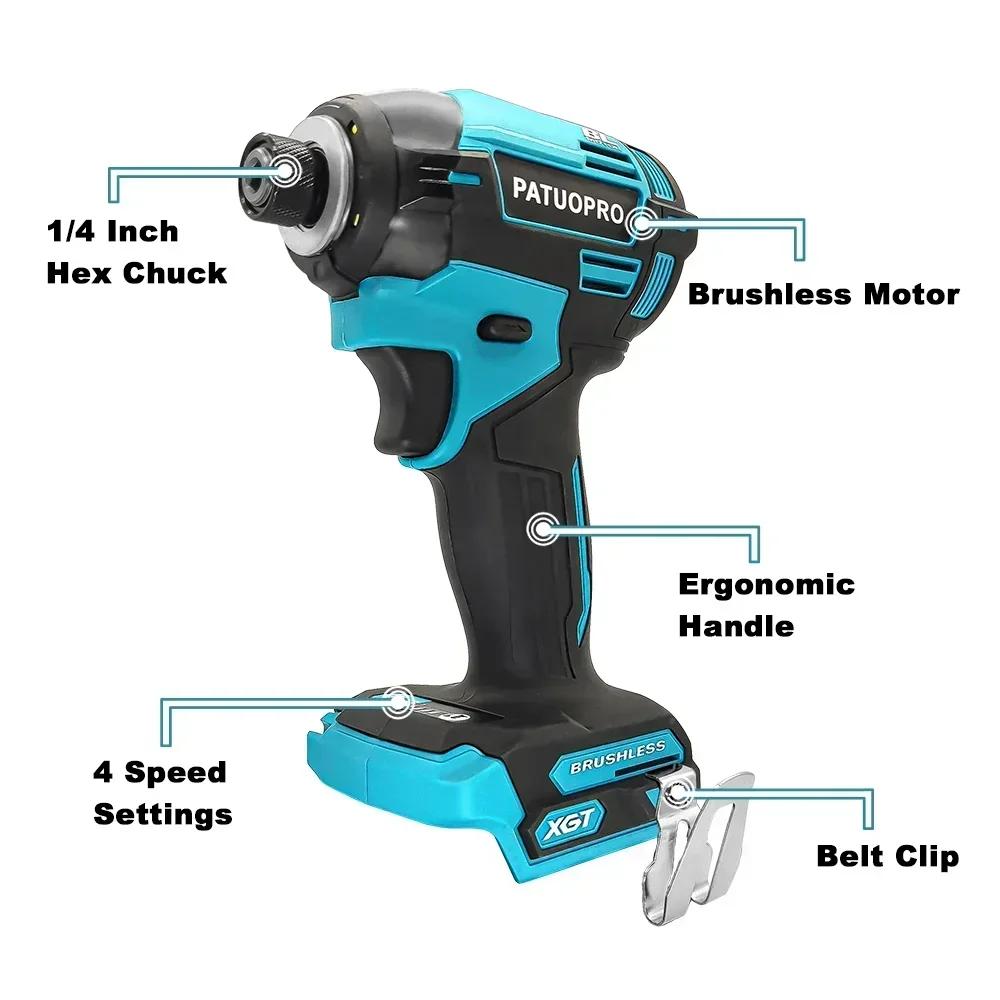 1/4 inch Brushless Electric Impact Screwdriver 4-Speed Cordless Compact Screwdriver Handheld Power Tool For Makita 18V Battery