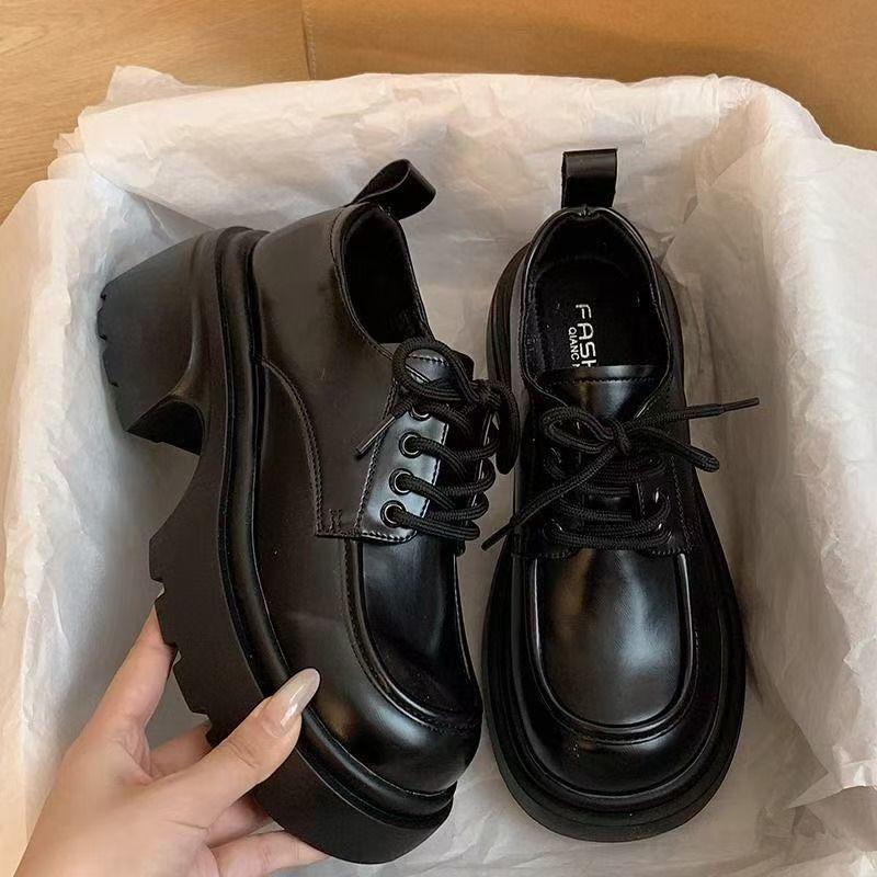 Fashion retro British style lace-up small leather shoes for women 2025 spring and summer new thick-soled versatile small leather shoes single shoes f