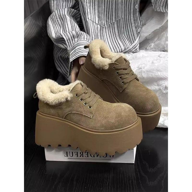 Omuleț Mao Mao gură retro cap rotund pantofi pâine stație europeană pantofi muffin pantofi de damă piele mată 2025 cu talpă groasă înaltă