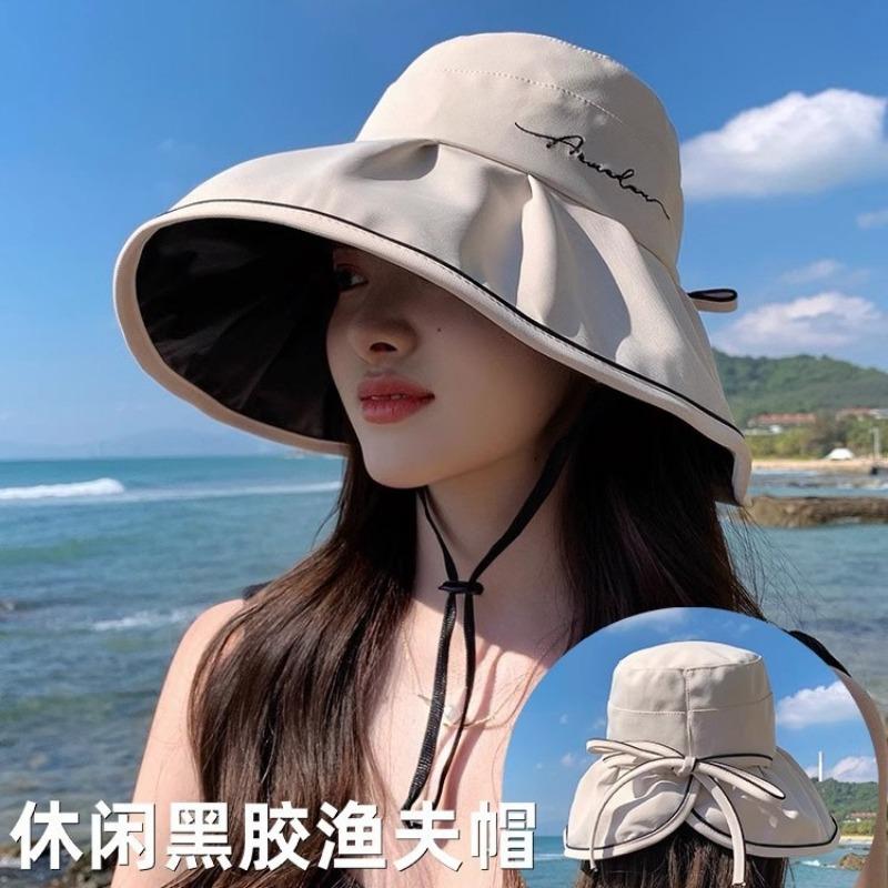 New hat summer women summer vinyl visor sunscreen face bucket hat anti purple line sun hat