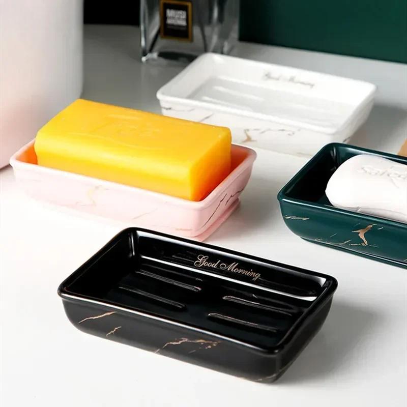 Light Luxury Soap Holder Ceramic Rectangle Household Bathroom Accessories Soap Dish Holders Restroom Organizer Kitchen Storage
