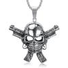 European and American hot-selling styles 316 stainless steel locomotive wind skull men's pendant, double gun skull necklace