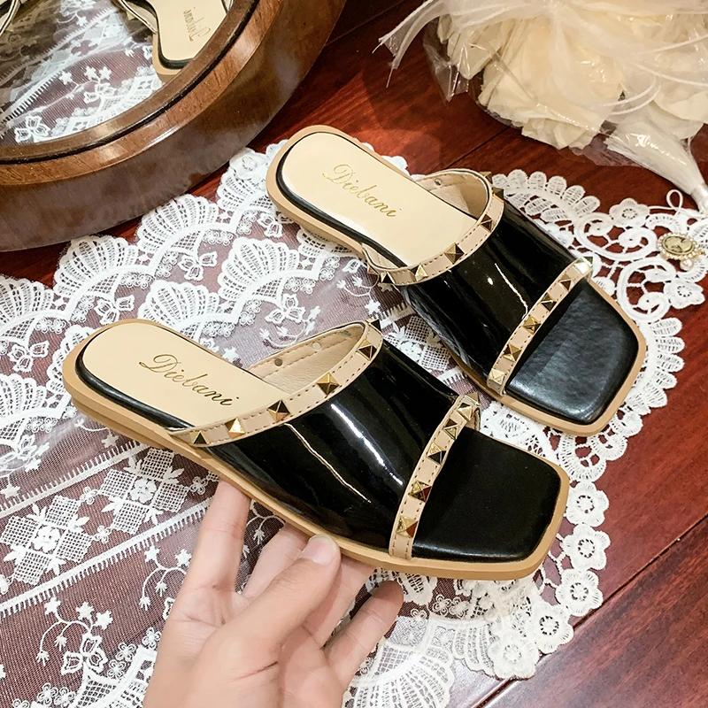 Fashion 2025Women Shoes Slippers Pointed Toe Metal Rivets Low Heeled Pumps Female Fashion Designer Casual Shoes Summer Sandals