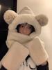 Bear ears hat scarf integrated women's winter cute plush thickened warm scarf gloves three-piece set