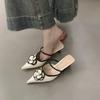Fashion 2025Hot sale Summer Women Slippers High Heel British Style Pointed Banquet and Professional Wear Casual Sandals