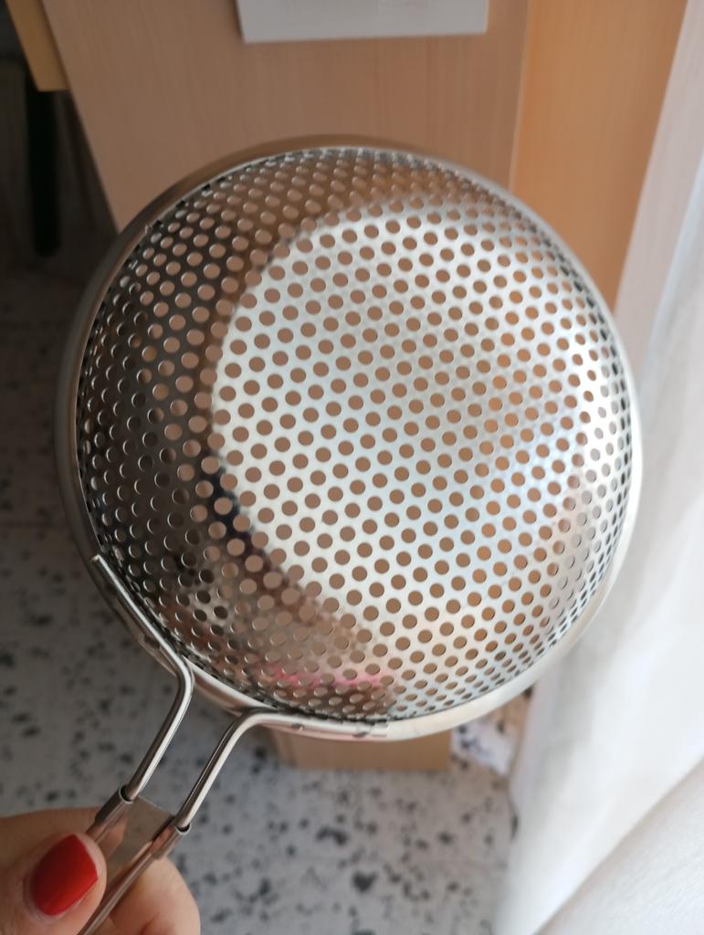 Colino cu ochiuri mari. Acesta este un accesoriu pentru bucătărie pe care îl găsesc cu adevărat comod, mai ales pentru prăjit.. Polonicul este foarte robust. Am rămas uimită de calitate în raport cu prețul și îl recomand cu căldură. Lingura spumieră mi-a ajuns în Italia în 15 zile, perfect ambalată. Recomand cu căldură achiziția 🌟🌟🌟🌟🌟 Mulțumesc Joom
