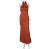 Western Style Ins New Fashion Gyaru Sleeveless Slim fit Long dress Sexy Backless Satin Hanging Neck Dress Women