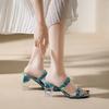 Fashion NEW Fashion Print Women Slippers Outside Transparent High Heels Slip On Sandals Women Summer Square Toe sandalias de mujer