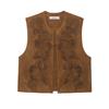 Fashion 2025 Early Autumn New Women's Fashion Casual Suede Like Texture Vest Embroidered Patterns Trendy & Versatile Sleeveless Tops