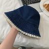 Cute bucket hat lace edge denim sunscreen basin hat advanced sense sunshade college wind show face small bucket hat female