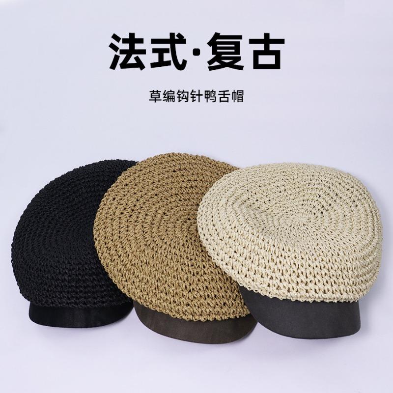 Straw star anise female breathable versatile retro face small beret thin contrasting color brim straw hat spring and summer
