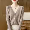 Niche V-neck twist knitted cardigan women's short jacket long-sleeved sweater loose and thin top