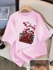 A Basket Of Cherries Printing Female Tee Shirt Breathable Casual T-Shirts Summer Short Sleeve Soft Loose Streetwear Women