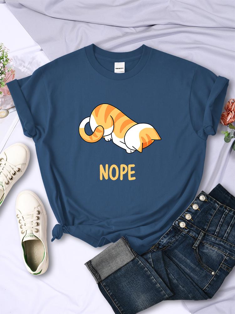 The little orange cat bows his head and refuses Printed T-Shirts Women Funny Cartoons Short Sleeves Soft Summer T Shirt Female