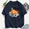 Sleeping Cat Nope Cartoons Print Male Short Sleeve Harajuku Street T-Shirts Summer Loose T Shirts Harajuku Cotton T Shirt Men