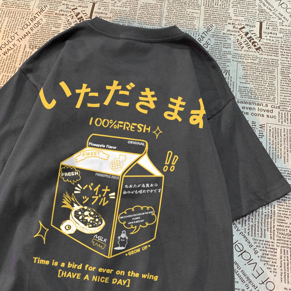100% Fresh Pineapple Juice Time Is A Bird For Ever On The Wing Men Tshirt Casual Top Cotton Breathable T-Shirt Soft Loose Tees