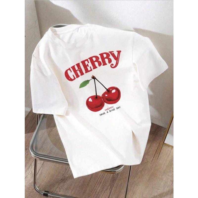 New Cherry Fun Printed Women's Cotton T-shirt Retro Personality Floral Graphic Top Fashion Casual Couple Y2k Round Neck T-shirt