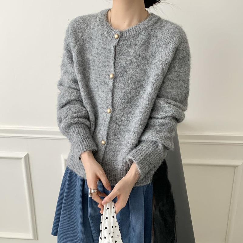 Gentle wind solid color crew neck sweater jacket women's autumn and winter loose soft waxy milk FUFU knitted cardigan