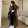 Autumn and winter new design sense lazy style long sweater knitted cardigan women's loose and thin coat top thick