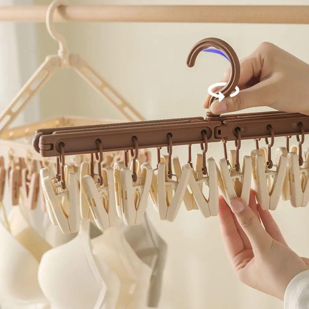 Foldable Clothes Hanger with Clips Rotatable Windproof Underwear Drying Rack Space Saving Socks Hanger Hook Household