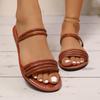 Fashion Women Sandals Summer Flat Heel Shoes for Women Casual Plus Size Beach Slippers Woman Leather Strap Slip-On Gladiator Sandals