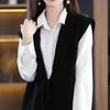 Vest vest women's autumn and winter new solid color V-neck cardigan sleeveless outer cardigan loose and versatile knitted women's vest