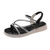 Fashion Flat-heeled Sandal Woman Rhinestone Comfortable Sandals for Women Summer New 2025 Without Heel Elegant Roman Fashion
