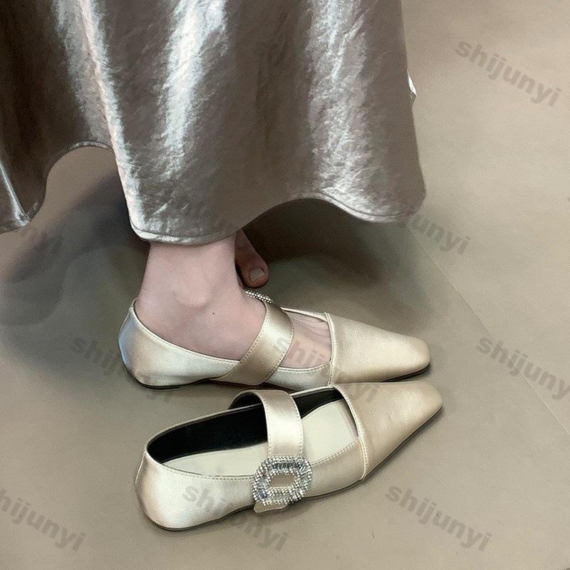 Fashion Women Summer Shoes Non Slip Buckle Strap Mary Jane Shoes 2025 Summer Fashion Rhinestone Lncreased Lnternal Women's Ballet Shoes