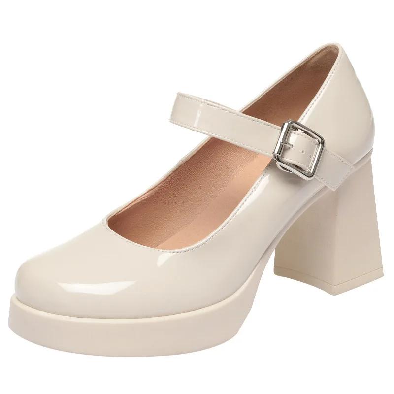Fashion Platform High Heels for Women's Fashion Shallow Mouth Buckle Round Chunky Heel Mary Jane Shoes Spring and Summer New Women Pumps