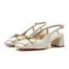 Fashion 2025 Summer Women High Heels Fashion Patent Leather Square Toe Mid-heel Sandal for Women Metal Buckle Decoration Slingback Pumps