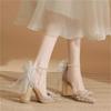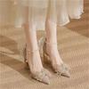 Fashion 2025 Spring Pointed High Heels Women Luxury Sequin Bow-knot Design String Bead Ankle Straps Pumps Ladies Sexy Dress Party Shoes