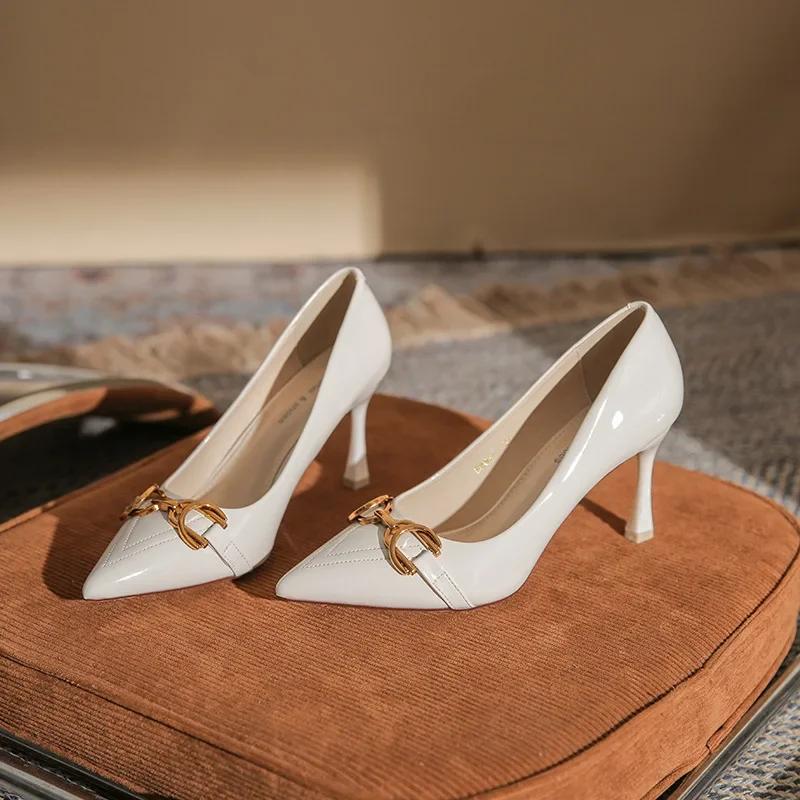 Fashion Fashion Metal Buckle High 6.5cm/8.5cm Stiletto Heels Pumps Women Shoes Pointed Toe Office Work Party Shoes Ladies Wedding Shoes