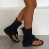 Fashion New Flat Roman Sandals Summer New Round Toe Clip Toe Versatile Open Toe Suede Lace-Up Non-Slip Flip-On Slippers