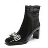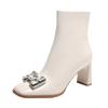 Modă 2024 toamnă și iarnă noi botine negre cu toc înalt cu vârf pătrat, modă pentru femei, fermoar lateral cu diamant, cizme de modă care se potrivesc cu totul