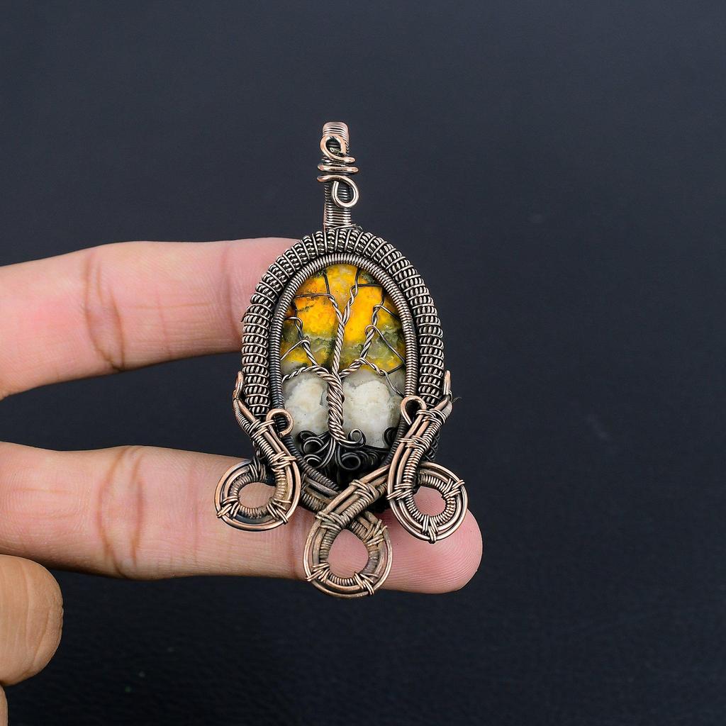 Bumble Bee Jasper Jewelry, 999 Copper Wire Wrapped Gemstone Pendant, Handmade Pendant, For Memorial Day