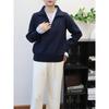 Autumn and winter new splicing contrasting color fake two-piece knitted sweater top loose design sweater pullover woman