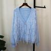 Tassel design imitation mink velvet knitted cardigan autumn and winter new soft waxy loose sweet sweater jacket women