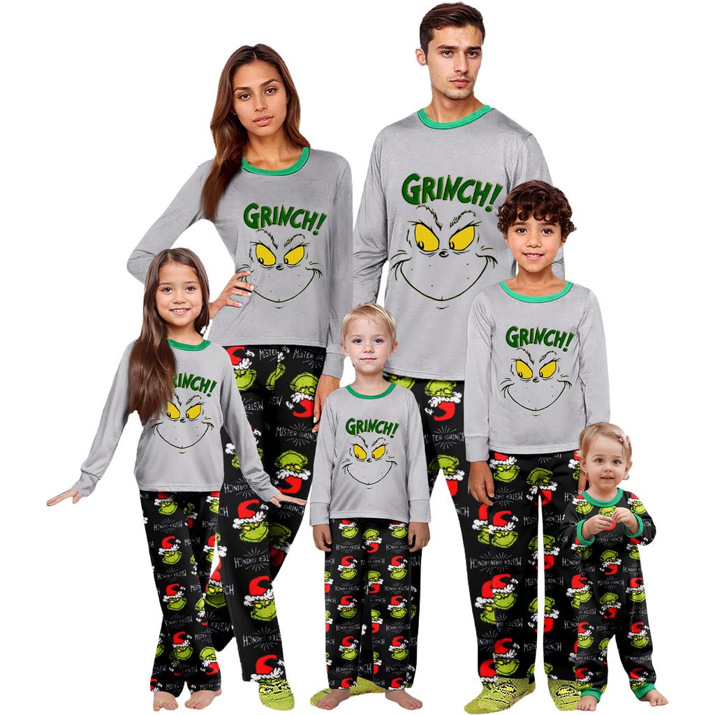 Costum de casă cu imprimeu de Crăciun părinte-copil, bluză cu mâneci lungi și pantaloni