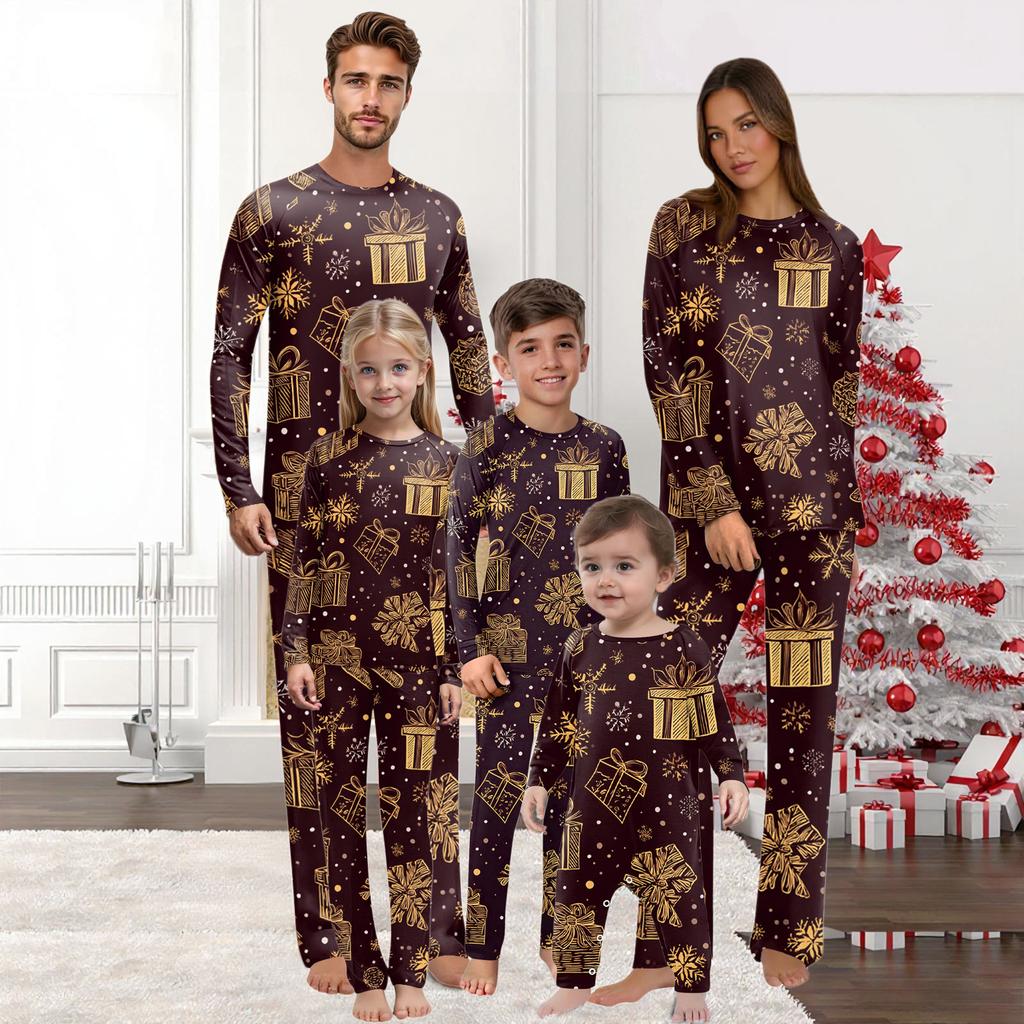 Set haine de casă de Crăciun cu gât rotund imprimat, mâneci lungi și pantaloni lungi pentru părinți și copii