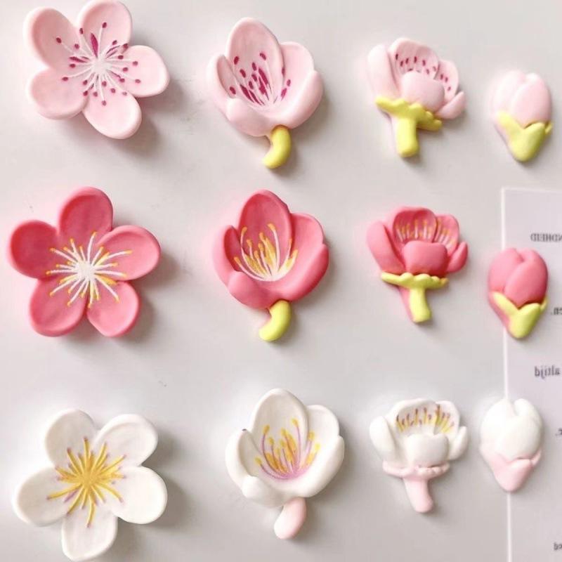 12pcs Fridge Magnet Pink Flower Resin Decorative Refrigerator Magnets Creative Whiteboard Cartoon Magnetic Sticker Aimants Frigo