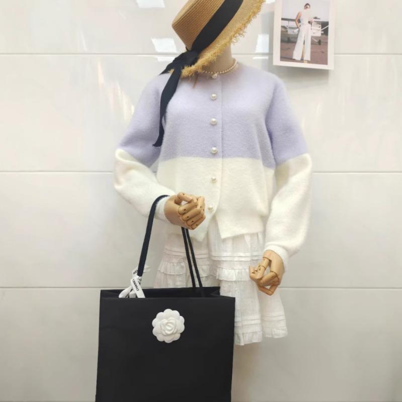 Imitation mink velvet knitted cardigan autumn and winter new soft waxy color matching gentle wind sweet loose sweater jacket women