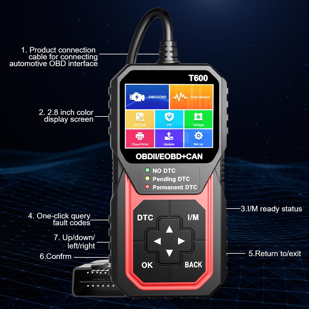 T600 Instrument de Diagnostic Auto Auto Scanner OBDII Cititor de Coduri BD2 Funcționează Pentru Toate Mașinile Șterge/Șterge Coduri YM109 YM119 Multilingv